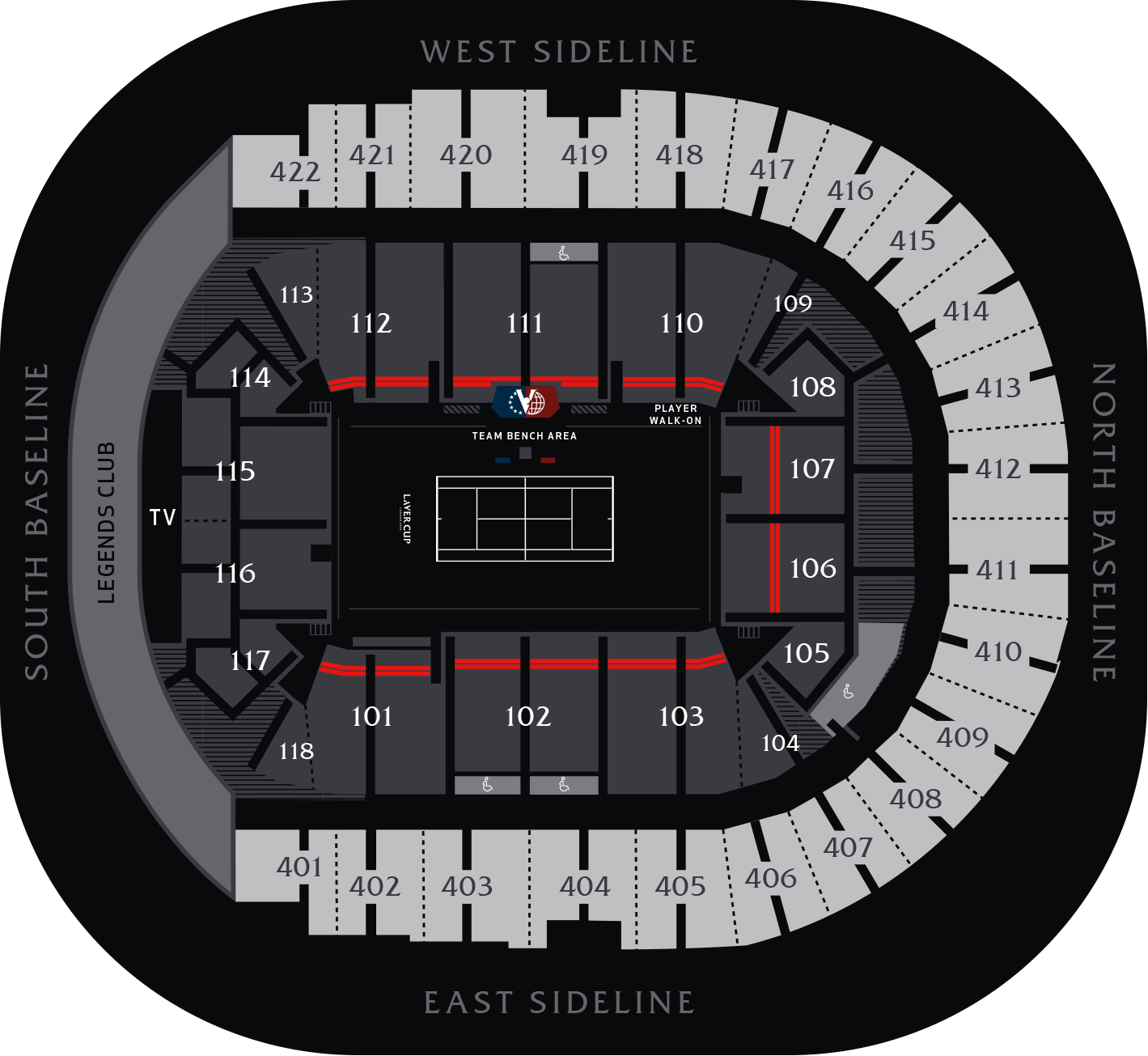 * The seat map is for illustrative purposes only. Photos may depict a previous Laver Cup.