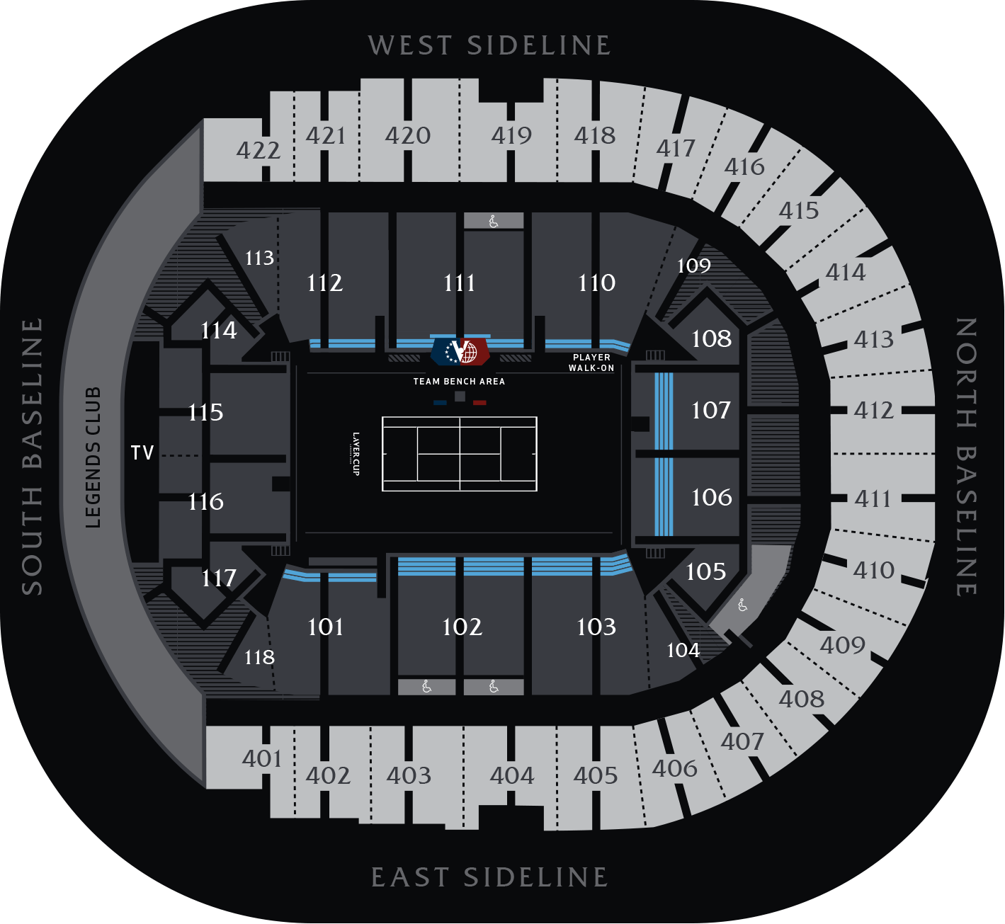 * The seat map is for illustrative purposes only. Photos may depict a previous Laver Cup.