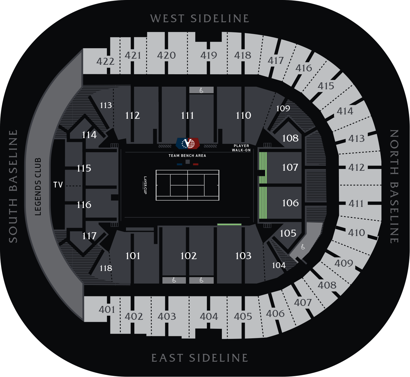* The seat map is for illustrative purposes only. Photos may depict a previous Laver Cup.