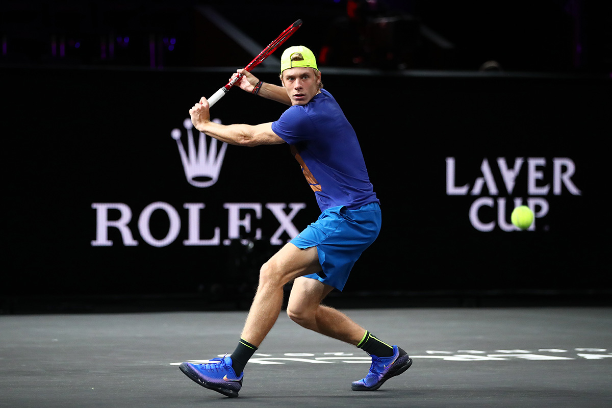 Denis Shapovalov of Team World plays a backhand during a practice session ahe. Photo by Clive Brunskill/Getty Images for Laver Cup