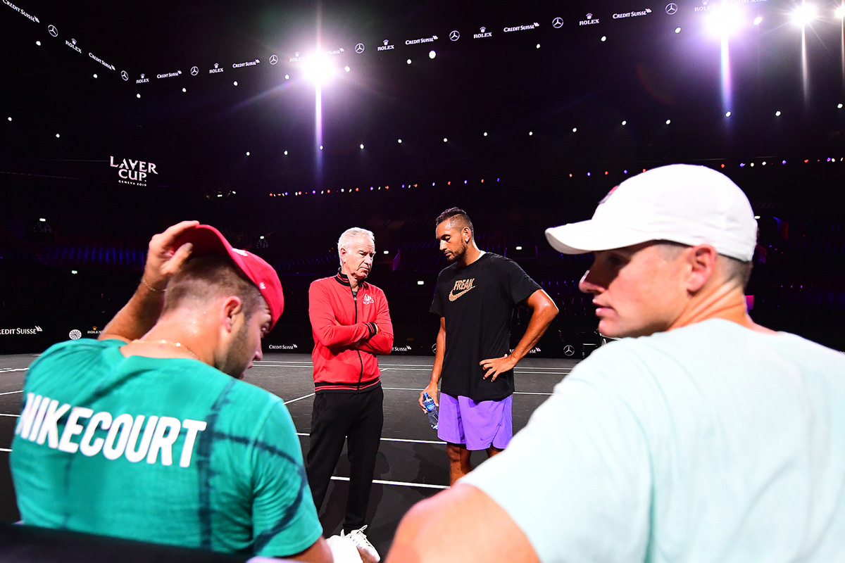 Nick Kyrgios in tune from the sidelines. Photo by Ben Solomon for the Laver Cup.