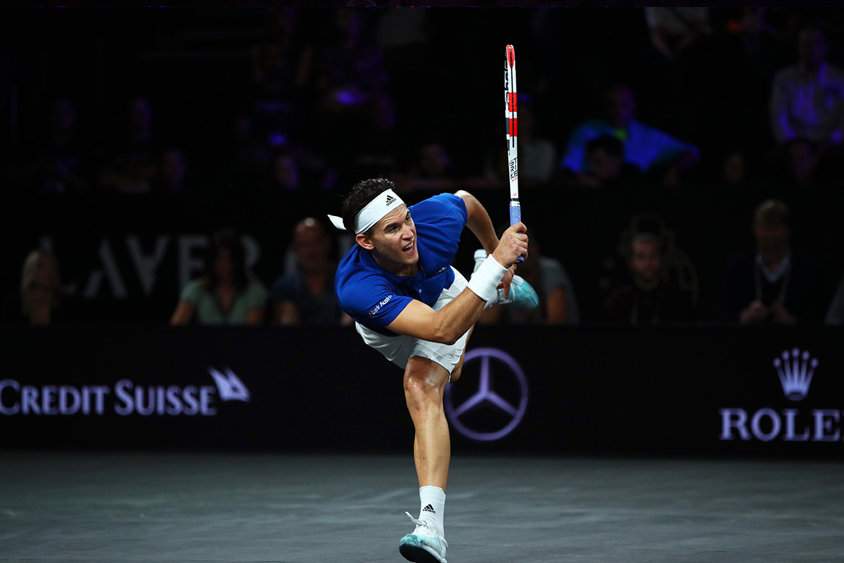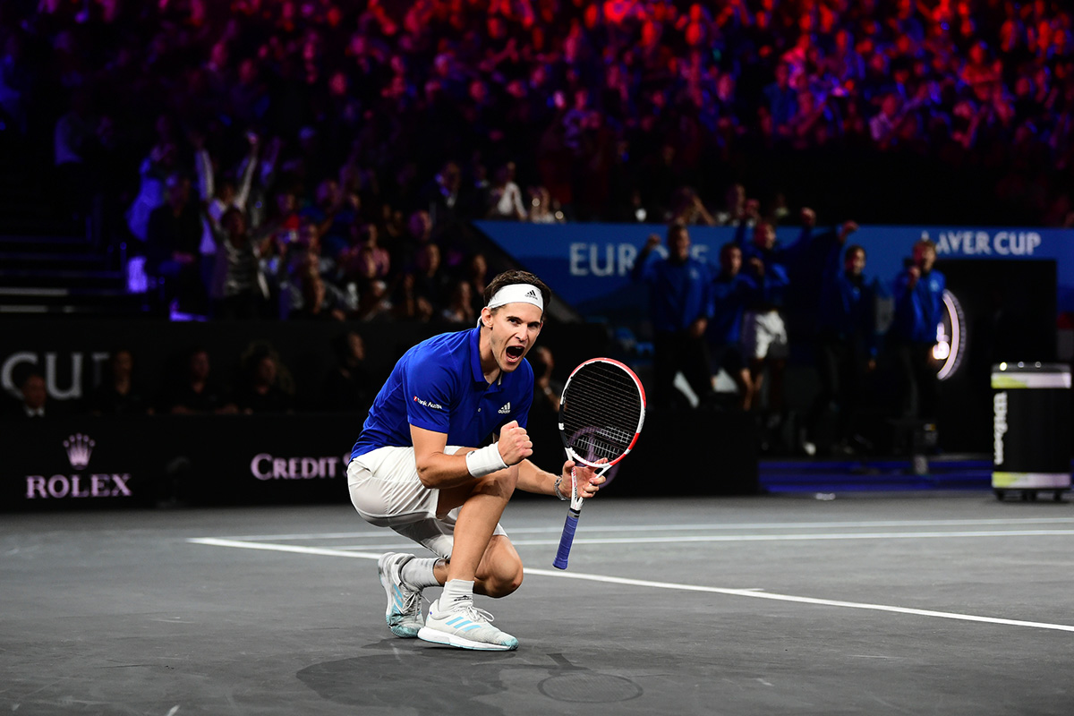 Dominic Thiem clears the finishing line against Denis Shapovalov. Photo by Ben Solomon for the Laver Cup