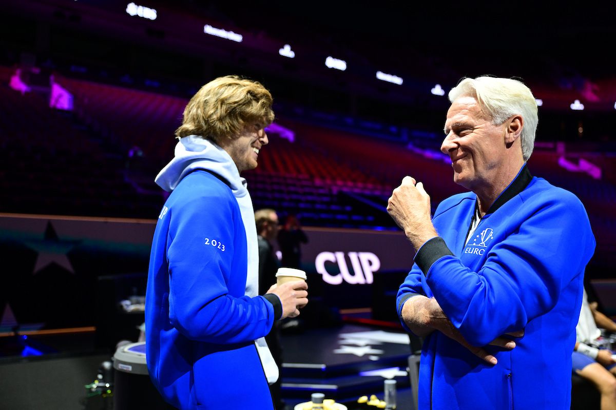 Team Europe Captain Bjorn Borg dons the blue. Photo by Ben Solomon.