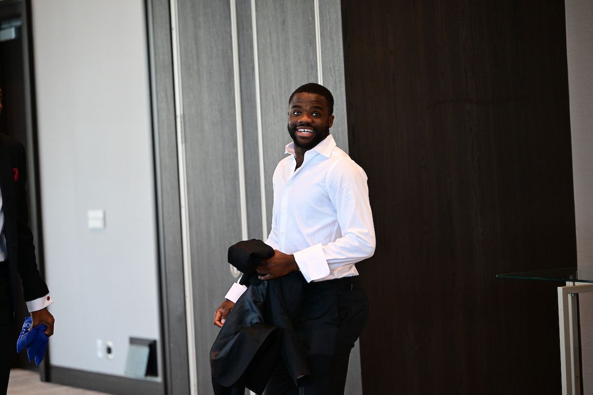 Frances Tiafoe gets ready for the official team photo shoot. Photo by Ben Solomon.