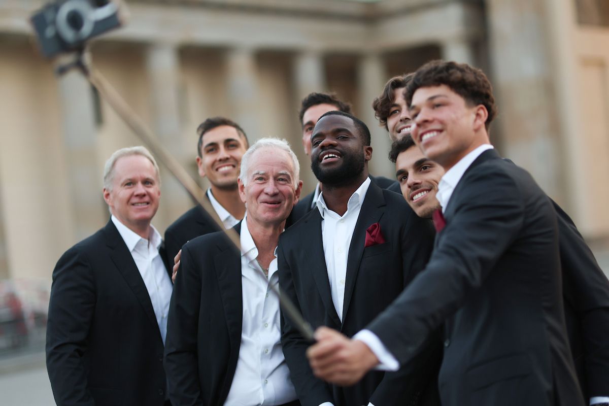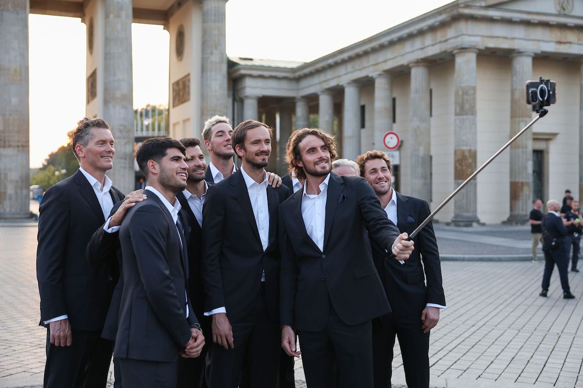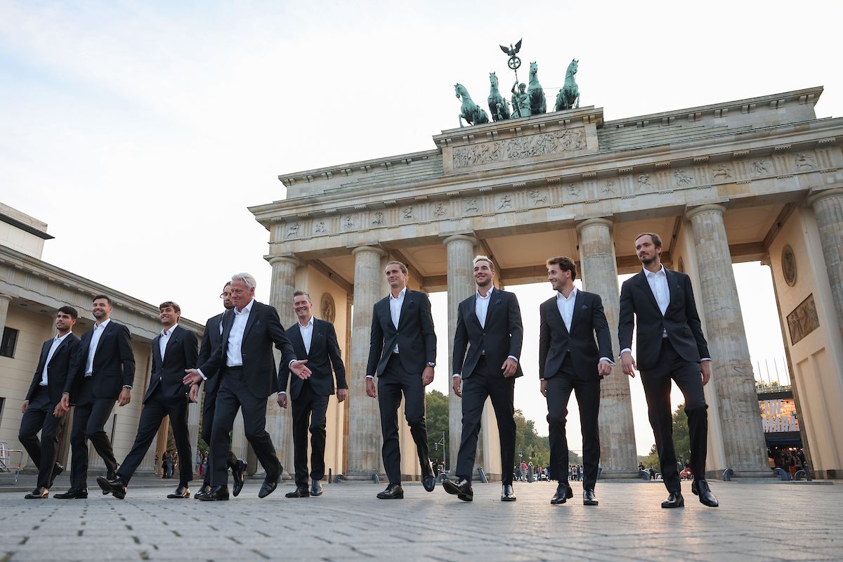 Team Europe and Team World gather for an iconic photo at the famous Brandenburg Gate ahead of Laver Cup Berlin 2024.