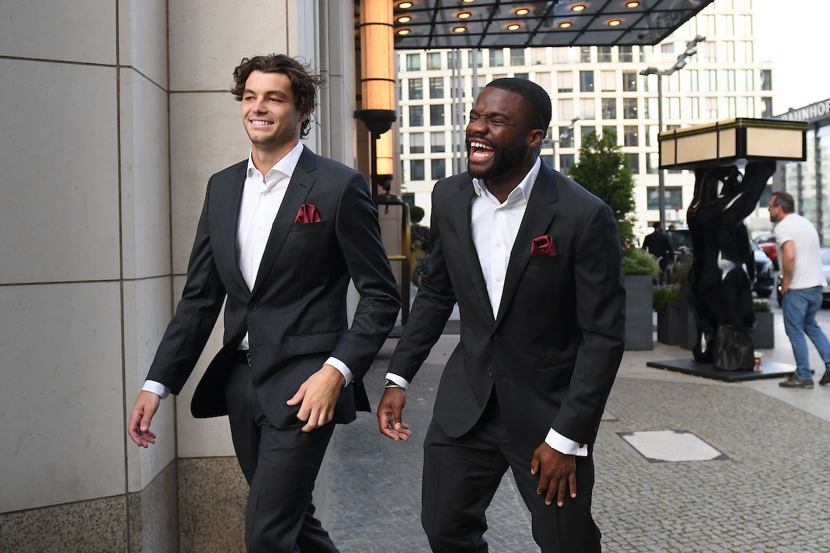 Teammates and buddies, Taylor Fritz and Frances Tiafoe, step out for an iconic moment. Photo by Luciano Lima/Getty Images