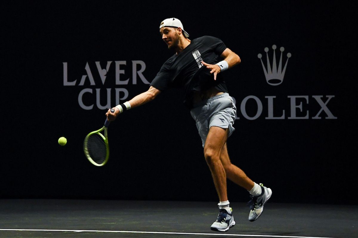 Jan-Lennard Struff plays a forehand during Team Europe practice. Photo by Luciano Lima/Getty Images