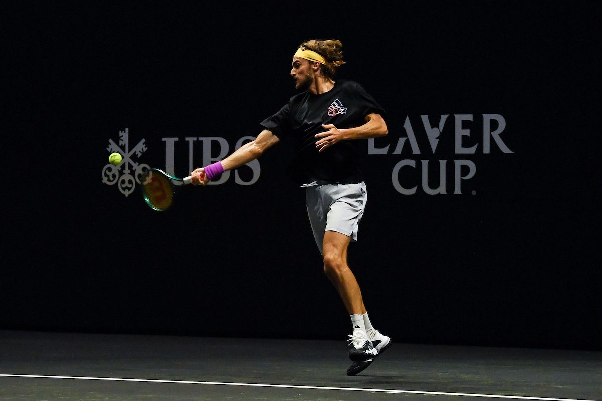 Stefanos Tsitsipas looks on during Team Europe practice. Photo by Maja Hitij/Getty Images