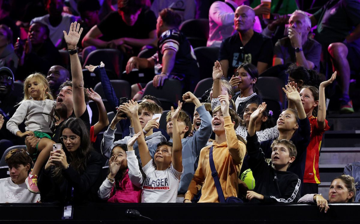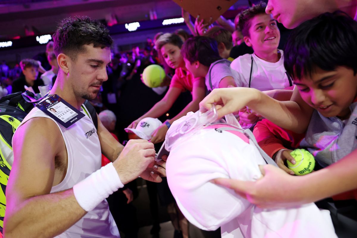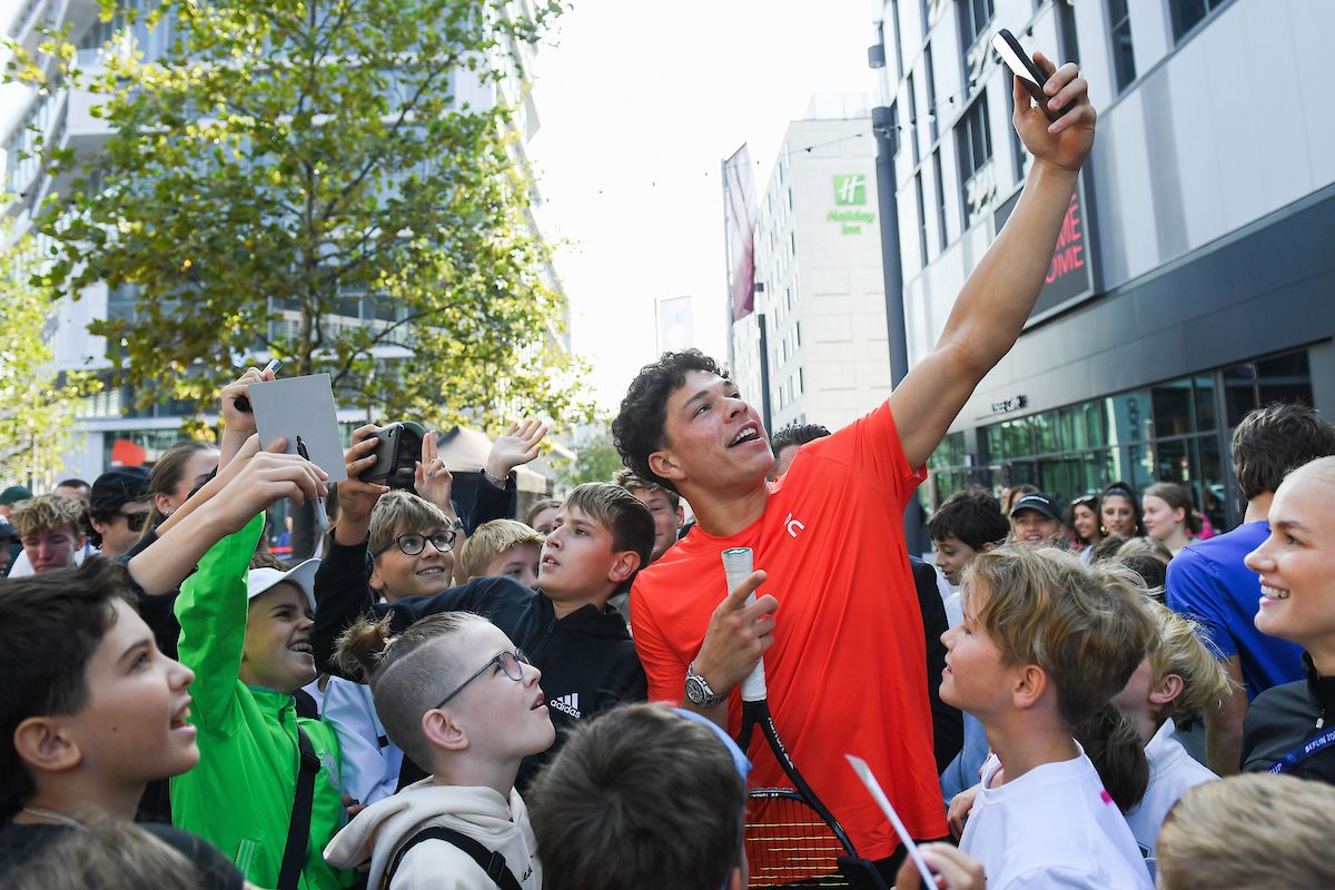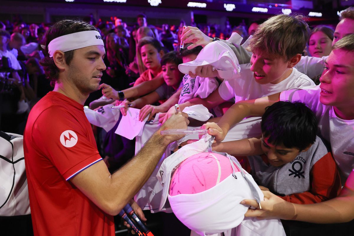 Team World’s Ben Shelton mixes with the crowd in the Laver Cup Fan Zone. Photo by Luciano Lima/Getty Images