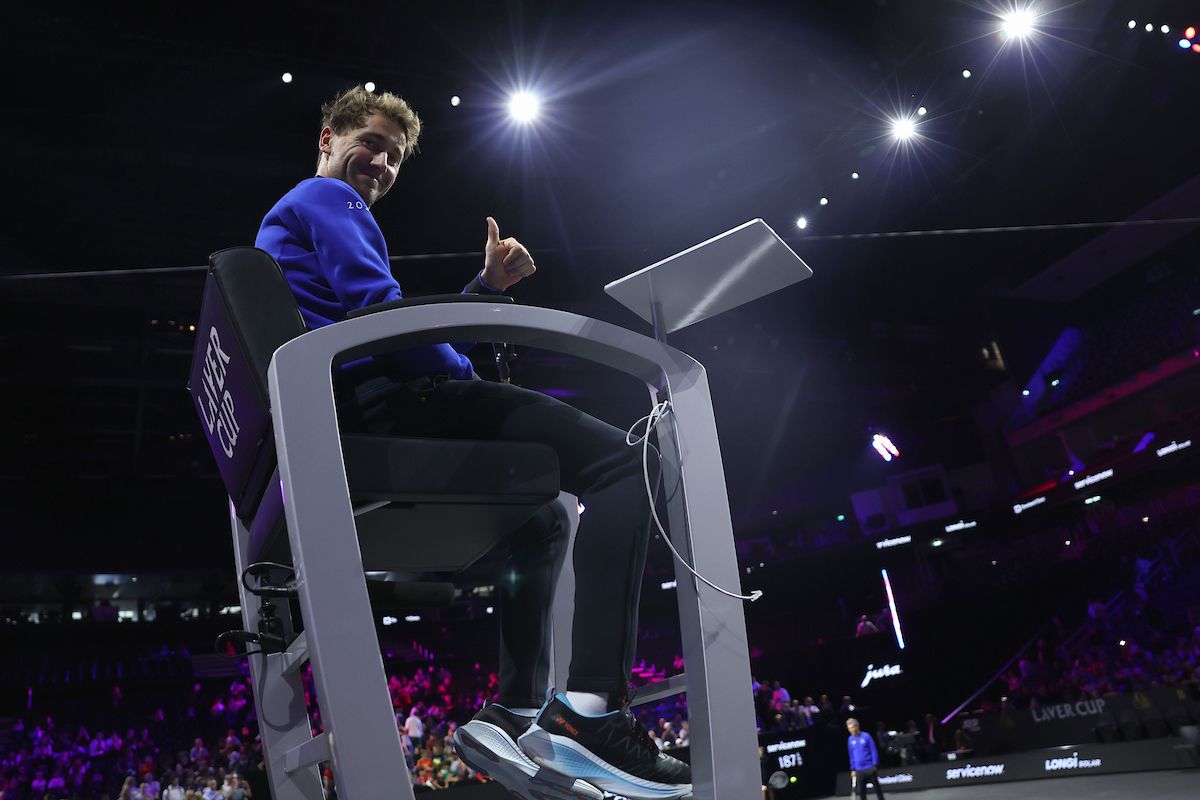 Norwegian Casper Ruud turns umpire at the Laver Cup Open Practice Day. Photo by Maja Hitij/Getty Images