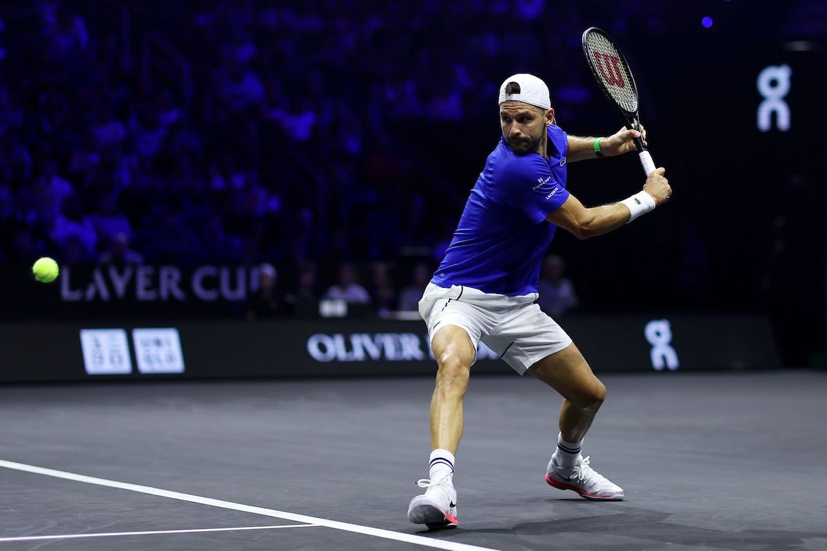 Grigor Dimitrov in action against Alejandro Tabilo. Photo by Maja Hitij/Getty Images